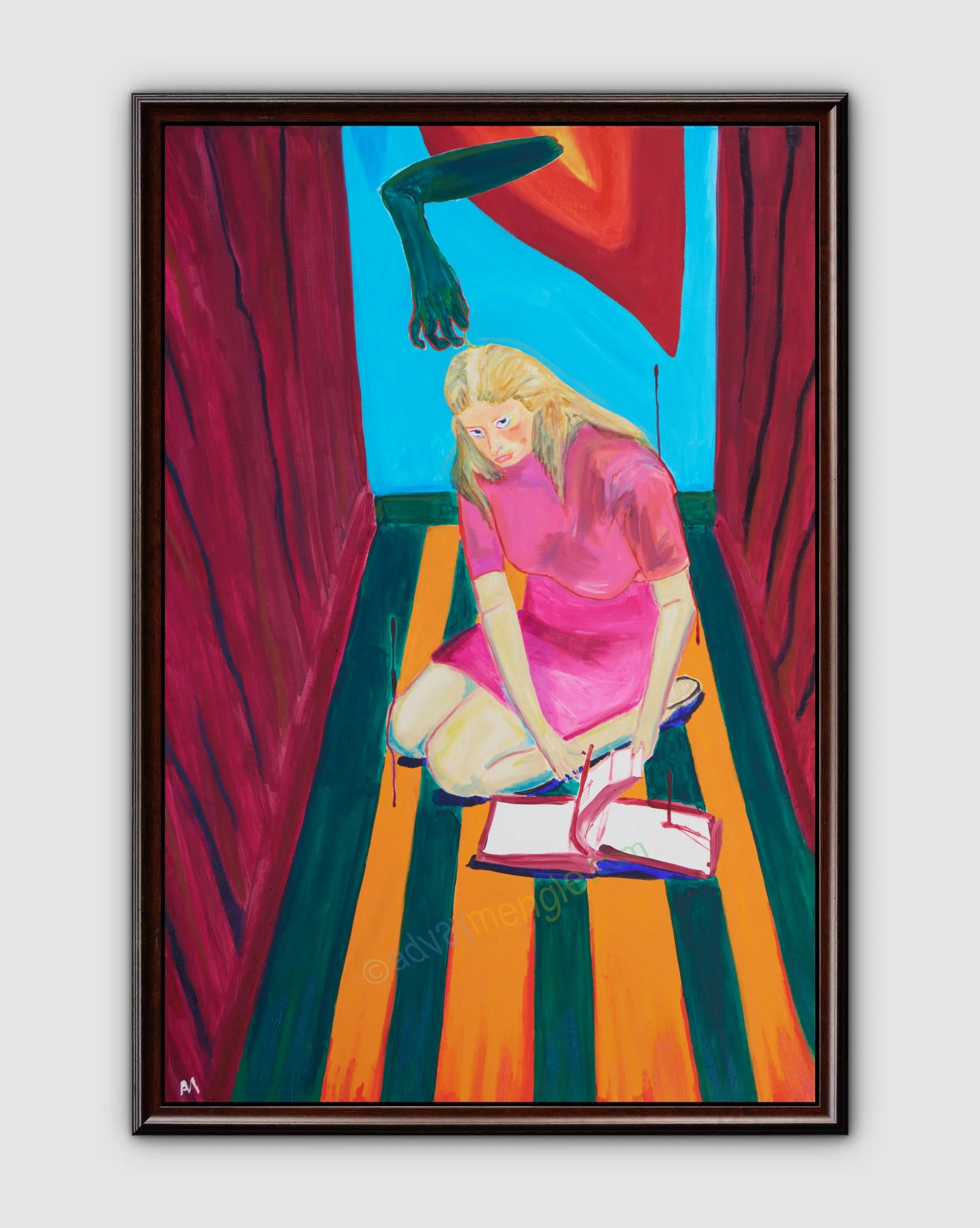 Advay's 2025 acrylic on linen piece The Impotent State will premiere at Stand Up!, on display from July 26, 2025 (5pm reception) through August 23.